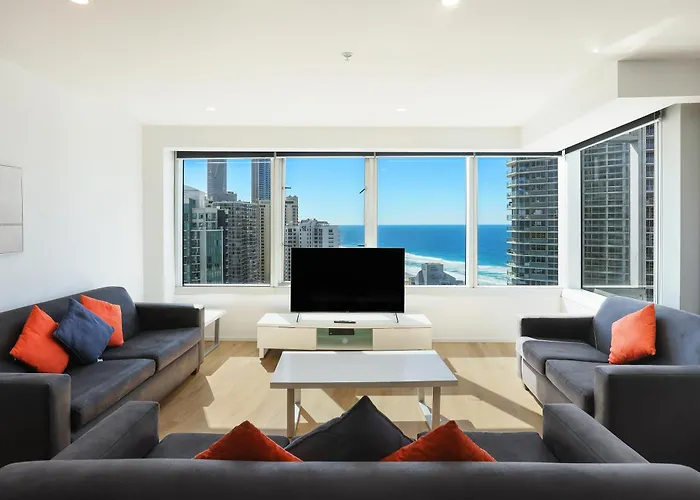 Q Tower Amazing Ocean Views 22Nd Level Heated Pools Sleeps 6 - Optimise Bnb apartment has an equipped kitchenette provided with an oven and a dishwasher. Greyhound Terminal Surfers Paradise bus station is in the vicinity of the apartment. This apartment also provides guests with access to a fitness room, allowing them to focus on their physical well-being.