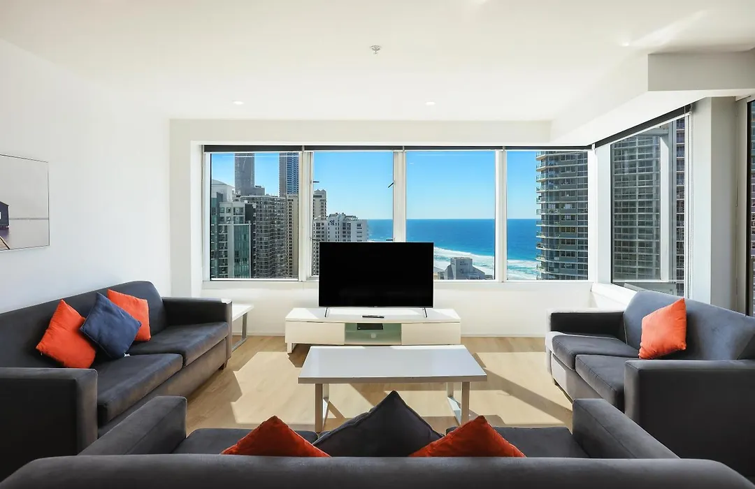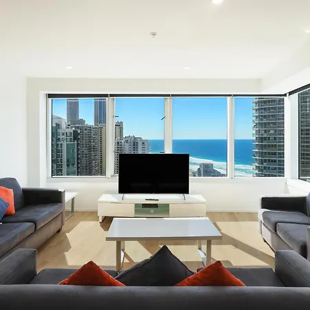 Doté d'une piscine extérieure, l'appartement Q Tower Amazing Ocean Views 22Nd Level Heated Pools Sleeps 6 - Optimise Bnb Gold Coast spacieux est situé à moins de 5 minutes à pied de Pink Poodle Sign. Le domicile de 65 m² avec un sauna et une piscine couverte se trouve à proximité du SkyPoint Observation Deck.